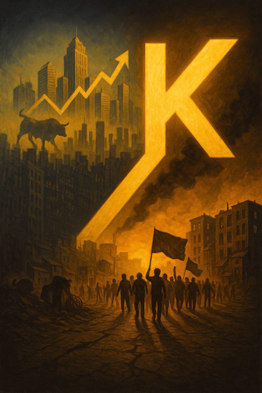 The horizon we face is not predetermined. The top of the K will not collapse out of moral exhaustion; the bottom will not rise simply because the numbers become too grotesque to ignore. Change will come when people refuse to accept the terms of their immiseration and link their struggles to the millions worldwide fighting the same battle. The task is simple, even if the work is not: turn isolation into solidarity, turn precarity into organization, turn the fracture of the K into the fault line that shakes the whole structure loose. The future belongs to those who build it together.
