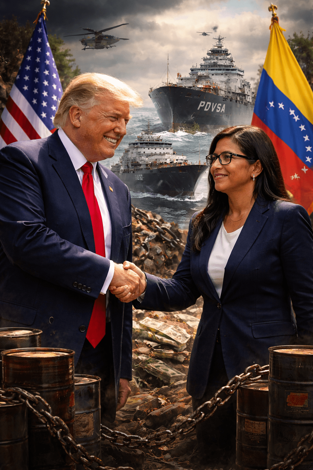 If you listen only to the voices that float across television screens and front pages, you might think Venezuela’s present is being shaped by phone calls, smiles, reform bills, and diplomatic choreography. CNN tells us that Trump spoke with Delcy Rodríguez, that oil executives were summoned to the White House, that a new hydrocarbons law is on the table, that the CIA director paid a visit, that deportation flights have resumed, and that the United States has now “officially started selling Venezuelan oil.” These are the surface movements, the polite gestures of high politics. But history is not written by atmospherics. It is written by ships at sea, by accounts frozen or seized, by contracts enforced with warships, and by workers who wake up each day under siege conditions they did not choose.